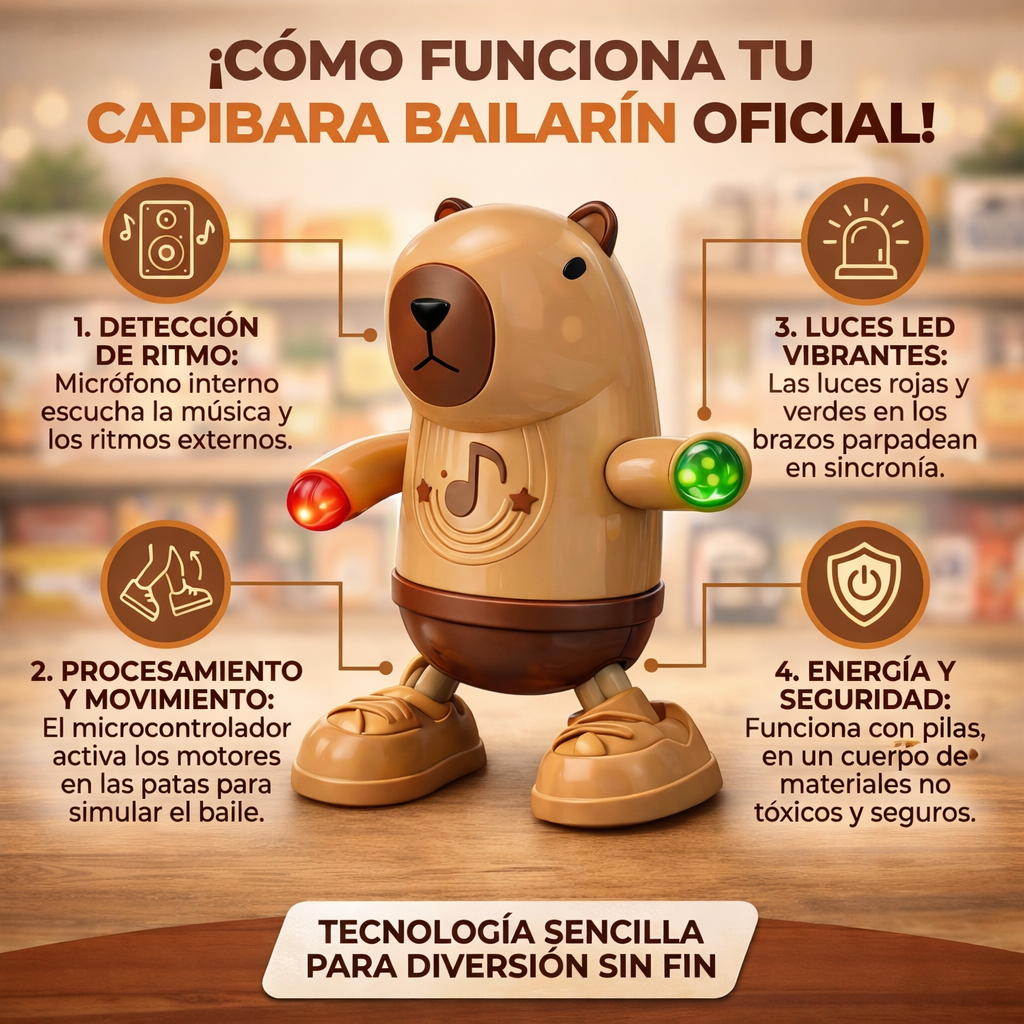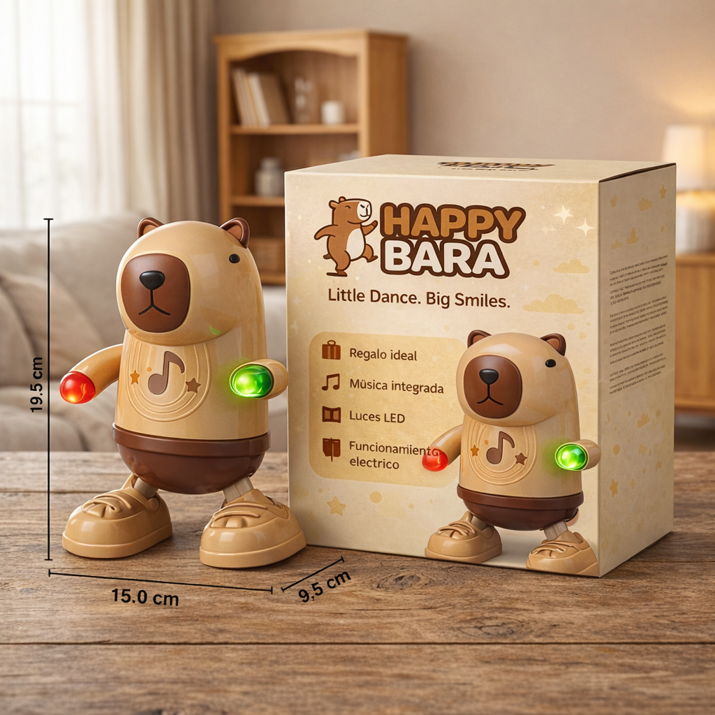 HappyBara está pensada para acompañar el ambiente, no para llenarlo de ruido. El sonido y las luces son suaves, lo justo para animar el momento sin resultar molestos, incluso cuando estás tranquilo en casa.